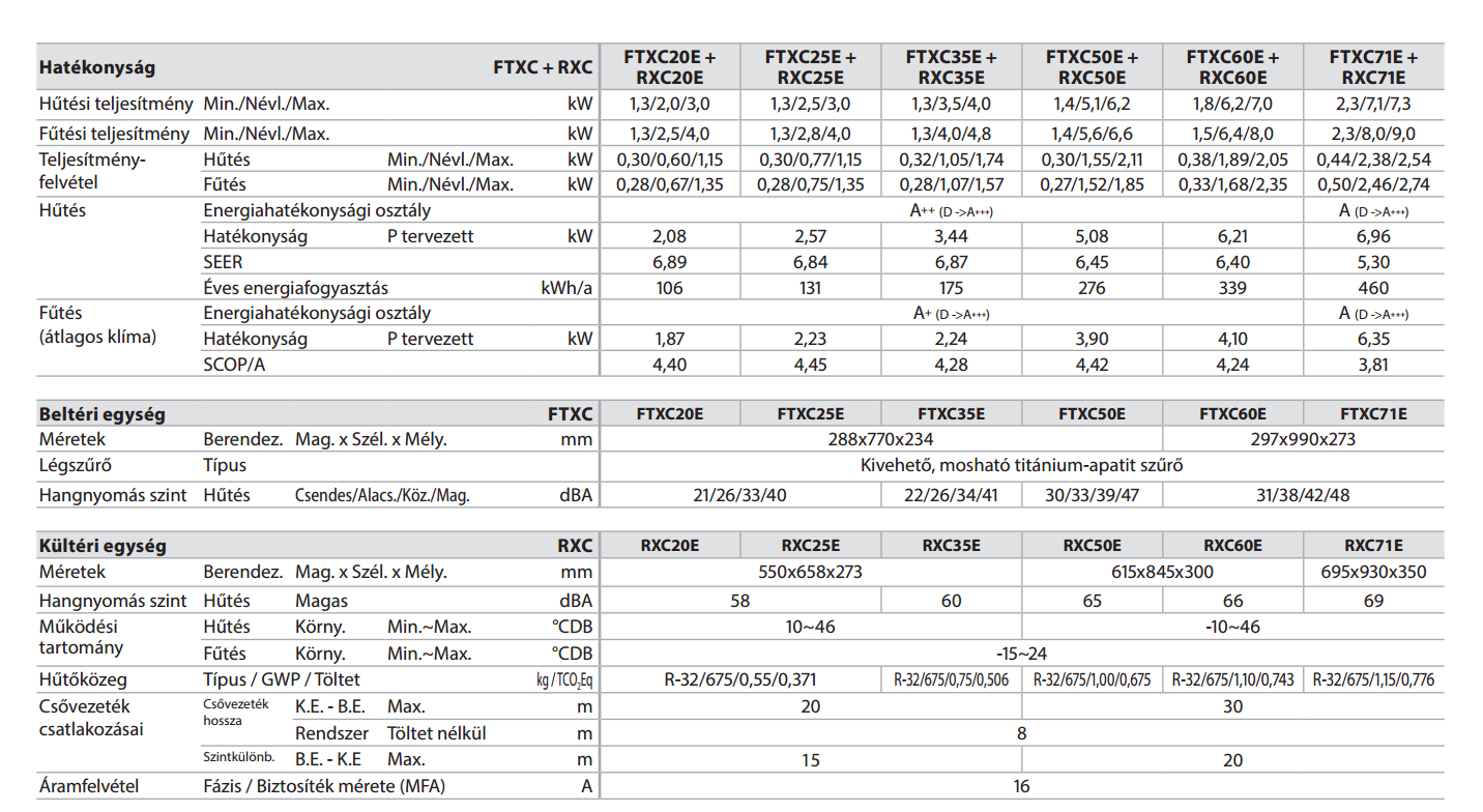 - Hűtő teljesítmény : 3,5 kW